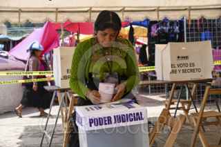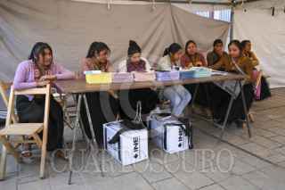 SAN JUAN CHAMULA, CHIAPAS, 01JUNIO2025.- Se llevan a cabo por primera vez en el país elecciones para elegir al Poder Judicial. En punto de las 8 de la mañana los y los representantes de las dos casillas ubicadas en la cabecera municipal abrieron sus puertas para que la población tsotsil de Chamula pudiera acudir libremente a emitir su voto. FOTO: ISABEL MATEOS HINOJOSA/CUARTOSCURO.COM