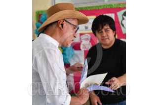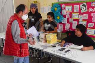 CIUDAD DE MÉXICO, 01JUNIO2025.- Una adulto mayor se respalda con un acordeón escrito por ella misma para decidir y emitir su voto en la boleta adecuada en las elecciones del Poder Judicial. Esto en una casilla correspondiente distrito 15 en la alcaldía Benito Juárez. FOTO: MARIO JASSO/CUARTOSCURO.COM