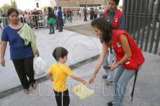 MONTERREY, NUEVO LEON 04NOVIEMBRE2007.- Se abrio un centro de acopio en la parte del horno 3, con "Luca" la marioneta gigante que forma parte del show emblematico del forum universal de las culturas,donde la gente podra tomarse la foto con el personaje a cambio de llevar víveres, la meta es llenar un vagon de tren. FOTO: PEDRO KRISTIAN LOPEZ/CUARTOSCURO.COM