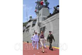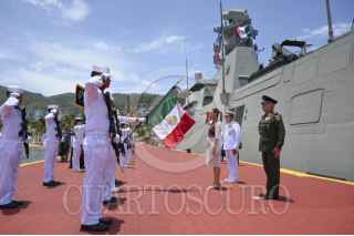 ACAPULCO, GUERRERO, 01JUNIO2025.- Claudia Sheinbaum, Presidenta de México, encabezó el Día de la Marina Nacional a bordo de una embarcación de la Secretaría de Marina. Ahí también lanzó una corona de flores en memoria de los marinos que han perdido la vida al servicio a la patria, como lo que murieron en el accidente que tuvo el Buque Escuela Cuauhtémoc. Fue acompañada por el secretario de Marina, Raymundo Pedro Morales Ángeles. FOTO: PRESIDENCIA/CUARTOSCURO.COM