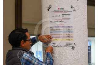 TOLUCA, ESTADO DE MÉXICO, 01JUNIO2025.- Al cierre de la casilla seccional ubicada en la Concha Acústica en el centro de Toluca, se contabilizó la participación de 24 personas durante la elección judicial. Los resultado fueron pegados en uno de los pilares del lugar. FOTO: CRISANTA ESPINOSA AGUILAR /CUARTOSCURO.COM