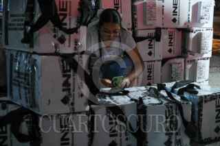 SAN CRISTÓBAL DE LAS CASAS, CHIAPAS, 01 DE JUNIO DE 2025.– Personal del Instituto Nacional Electoral (INE), acompañado por elementos de seguridad, se prepara para el traslado de los paquetes electorales con los votos emitidos en la jornada, tras el cierre de casillas en la región. FOTO: ISABEL MATEOS HINOJOSA / CUARTOSCURO.COM