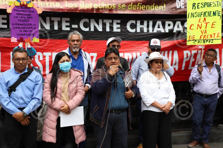 CIUDAD DE MÉXICO, 02JUNIO2025.- Pedro Hernández, secretario general de la sección 9 de la CNTE en la capital del país, tomó la palabra para dar inicio a la conferencia de prensa previo a la reunión que sostendrán con la secretaria de Gobernación, Rosa Icela Rodríguez. FOTO: DANIEL AUGUSTO/ CUARTOSCURO.COM