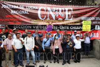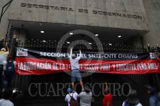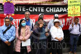 CIUDAD DE MÉXICO, 02JUNIO2025.- Los dirigentes seccionales de la Coordinadora Nacional de Trabajadores de la Educación (CNTE) ofrecieron una conferencia de prensa donde anunciaron que el plantón en el Zócalo continúa, esto previo a una nueva negociación con la Secretaría de Gobernación. FOTO: DANIEL AUGUSTO/ CUARTOSCURO.COM