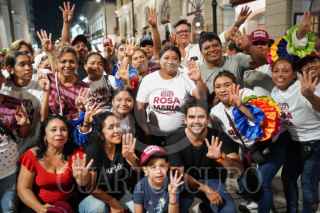 VERACRUZ, VERACRUZ, 02JUNIO2025.- Rosa María Hernández Espejo, candidata a la alcaldía de Veracruz por Morena-PVEM, festejo con simpatizantes en el zócalo de Veracruz su virtual triunfo, ya que señaló que tiene una delantera del 52.46%, sobre su contrincante Indira Rosales de Acción Nacional que alcanzó el 26.36? los votos, de acuerdo al PREP de Veracruz. FOTO: VICTORIA RAZO/CUARTOSCURO.COM