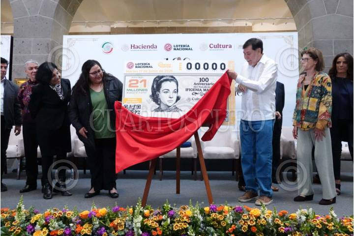 CIUDAD DE MÉXICO, 02JUNIO2025.- Citlalli Hernández, secretaria de las Mujeres, Gerardo Fernández Noroña, presidente de la mesa directiva en el Senado de la República, y Annie Pardo Cemo, madre de la presidenta de México, Claudia Sheinbaum, encabezaron la develación del Billete de la Lotería Nacional en el marco del centenario del natalicio de Ifigenia Martínez. El acto se realizó en la Antigua Casona del Senado de la República. FOTO: GRACIELA LÓPEZ/CUARTOSCURO.COM