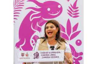 CIUDAD DE MÉXICO. 02JUNIO2025.- La jefa del Gobierno de la ciudad, Clara Brugada Molina; y el director de la policía Pablo Vázquez director de la SSC., anunció el alumbrado en calles de la alcaldía Álvaro Obregón. Una fuerte inversión para que niñas y mujeres caminen por esta demarcación, el evento se realizó en el la bombilla. FOTO: VICTORIA VALTIERRA/CUARTOSCURO.COM