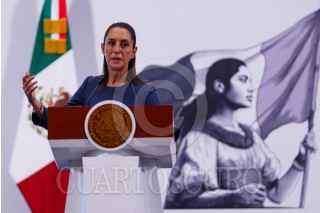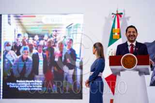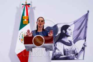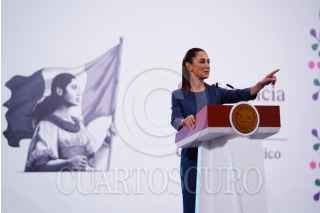 CIUDAD DE MÉXICO, 03JUNIO2025.- Claudia Sheinbaum Pardo, presidenta de México, muestra la gráfica con los resultados en los comicios electorales en Durango durante la conferencia de prensa “Mañanera del Pueblo” desde Palacio Nacional. FOTO: GALO CAÑAS/CUARTOSCURO.COM