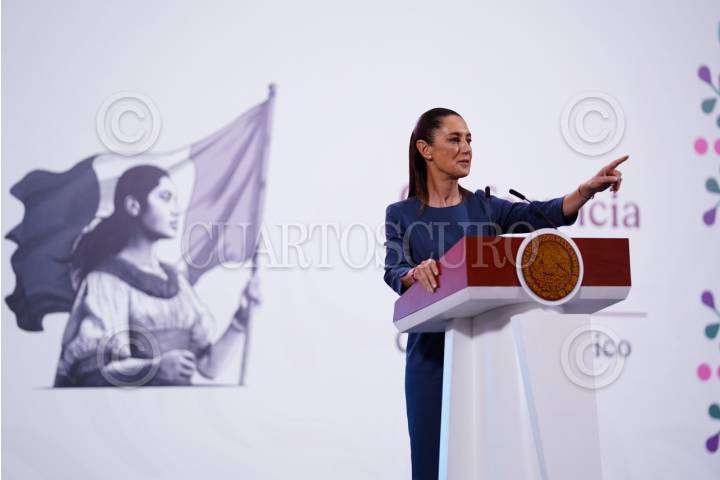 CIUDAD DE MÉXICO, 03JUNIO2025.- Claudia Sheinbaum Pardo, presidenta de México, encabezó la conferencia de prensa “Mañanera del Pueblo” desde Palacio Nacional en la que se presentó el informe de Salud. A su vez, la presidenta contestó cuestionamientos de los medios de comunicación. FOTO: GALO CAÑAS/CUARTOSCURO.COM