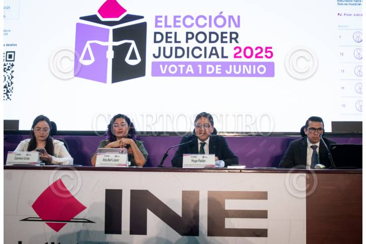 CIUDAD DE MÉXICO, 03JUNIO2025.- Carmen Urías, encargada del área de comunicación Social; Rita Bell Lopez, Consejera del Instituto Nacional Electoral (INE) y Hugo Patlán, encargado del despacho de la Unidad Técnica durante conferencia de prensa para hablar sobre las denuncias de la jornada electoral de las elecciones del Poder Judicial 2025 que se llevaron a cabo el pasado 01 de junio y aún se encuentra en revisión los resultados. FOTO: ANDREA MURCIA /CUARTOSCURO.COM