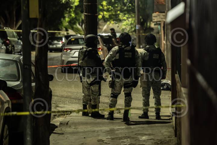 TIJUANA, BAJA CALIFORNIA, 03JUNIO2025.– Guardia Nacional resguarda la zona donde un ataque armado dejó dos muertos y tres heridos en Lomas del Porvenir. FOTO: OMAR MARTÍNEZ / CUARTOSCURO.COM