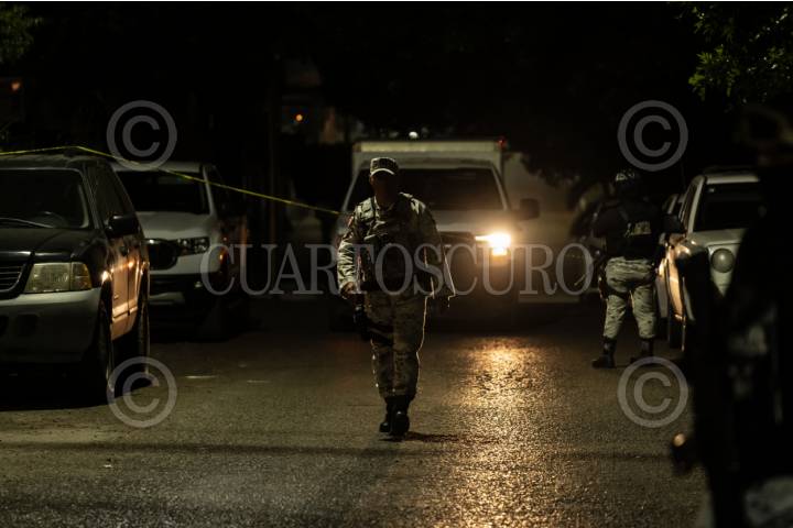 TIJUANA, BAJA CALIFORNIA, 03JUNIO2025.– Elementos de la policía vigilan la zona tras un ataque con arma de fuego en la colonia Infonavit Lomas del Porvenir, Delegación Playas, que dejó dos personas muertas y tres lesionadas. El hecho ocurrió sobre la calle Bahía Kino. FOTO: OMAR MARTÍNEZ / CUARTOSCURO.COM