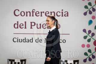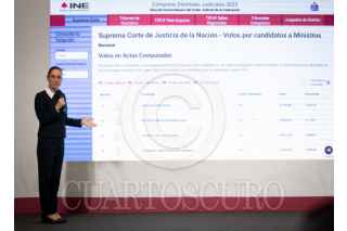CIUDAD DE MÉXICO, 04JUNIO2025.- Claudia Sheinbaum Pardo, presidenta de México durante conferencia de prensa en Palacio Nacional. En la imagen muestra los resultados de los votos en actas computados de la elección del Poder Judicial. FOTO: ANDREA MURCIA /CUARTOSCURO.COM