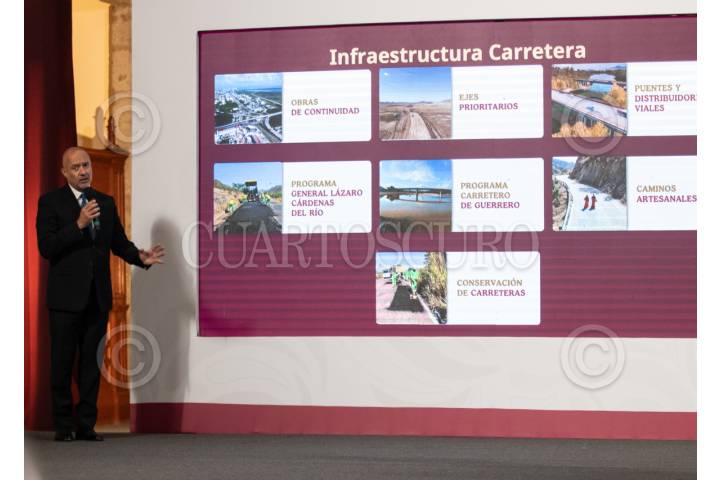 CIUDAD DE MÉXICO, 04JUNIO2025.- Jesús Antonio Esteva Medina, secretario de Infraestructura Comunicaciones y Transportes durante conferencia de prensa en Palacio Nacional. FOTO: ANDREA MURCIA /CUARTOSCURO.COM