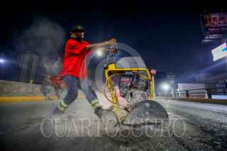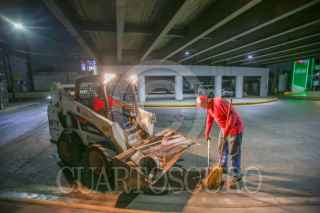 MONTERREY, NUEVO LEÓN, 04JUNIO2025.- Un trabajador hace limpieza durante las noches en calles y avenidas del municipio de Monterrey en brigadas permanentes para reparar la carpeta asfáltica. FOTO: GABRIELA PÉREZ MONTIEL / CUARTOSCURO.COM