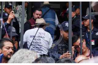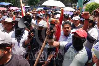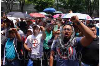 CIUDAD DE MEXICO, 04JUNIO2025.- Integrantes de la Coordinadora Nacional de Trabajadores de la Educación (CNTE) gritan consignas frente a los accesos de la Secretaría de Gobernación (Segob) durante la Tercer Mesa de negociación entre docentes y autoridades federales. FOTO: GALO CAÑAS/CUARTOSCURO.COM