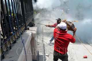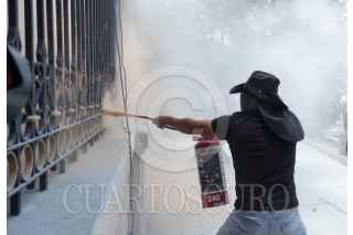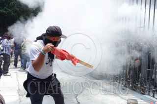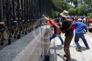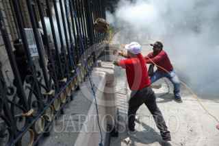 CIUDAD DE MEXICO, 04JUNIO025.- Maestros de Guerrero durante conato de enfrentamiento en las inmediaciones de Segob en el desarrollo de la tercera mesa de negociación con autoridade federales. FOTO: GALO CAÑAS/CUARTOSCURO.COM