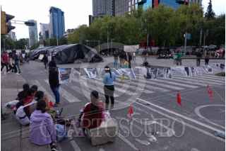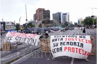 CIUDAD DE MÉXICO, 04JUNIO2025.- Motociclistas transitan caminando junto a su motocicleta por Avenida Insurgentes y Paseo de la Reforma debido a un plantón de más de 24 horas que mantiene un grupo de estudiantes de la Escuela Normal Rural "Plan de Ayala", en donde exigen justicia por la muerte de uno de sus compañeros, quien presuntamente recibió un disparo en la cabeza durante una manifestación frente a la Normal Rural Mactumactzá, el pasado 15 de mayo. FOTO: GRACIELA LÓPEZ/CUARTOSCURO.COM