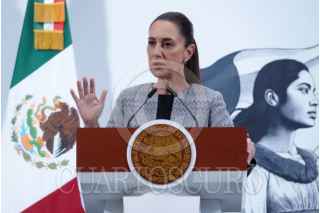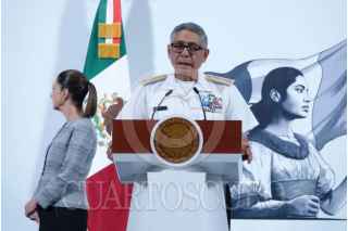 CIUDAD DE MÉXICO, 05JUNIO2025.- Raymundo Pedro Morales, secretario de Marina, acompañado de Claudia Sheinbaum, presidenta constitucional de los Estados Unidos Mexicanos, durante su participación en la Conferencia del pueblo realizada en Palacio Nacional. FOTO: GRACIELA LÓPEZ/CUARTOSCURO.COM