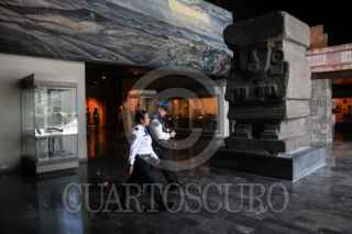 CIUDAD DE MÉXICO, 05JUNIO2025.- Policías auxiliares de la Secretaría de Seguridad Ciudadana (SSC) retomaron el resguardo del Museo Nacional de Antropología e Historia, el cual permaneció un día cerrado debido a la inconformidad del personal administrativo con el manejo de seguridad que llevaba una empresa privada. El Museo recibió ayer el "Premio Princesa de Asturias de la Concordia 2025" otorgado por la Fundación Princesa de Asturias. FOTO: MARIO JASSO/CUARTOSCURO.COM