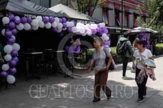 CIUDAD DE MÉXICO, 05JUNIO2025.- Arranque y firma de compromiso Instalación de puntos violeta en establecimientos mercantiles de la Zona Rosa, iniciativa creada por la Asociación Civil por el México que Deseamos en la calle Génova de Zona Rosa. FOTO: ANDREA MURCIA /CUARTOSCURO.COM