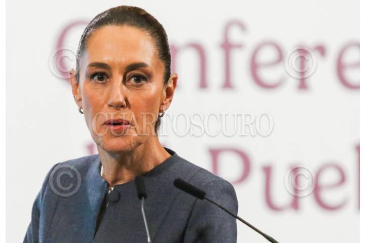 CIUDAD DE MÉXICO. 06JUNIO2025.- La Presidenta Claudia Sheinbaum Pardo, en la conferencia de prensa en el salón Tesorería del palacio Nacional. FOTO: VICTORIA VALTIERRA/CUARTOSCURO.COM