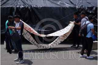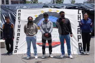 CIUDAD DE MÉXICO, 06JUNIO2025.- Alumnos de la Escuela Normal Rural Mactumactzá, provenientes de Chiapas, comenzaron a desalojar el campamento que mantenían en Avenida Reforma y el cruce con Insurgentes, para reubicarse en otro lugar de la ciudad. Durante una conferencia de prensa, los estudiantes normalistas explicaron que la decisión se tomó luego de los recientes avances en la investigación del asesinato de su compañero, Jesús Alain Vázquez Pérez, alumno de octavo semestre de dicha institución, quien perdió la vida el pasado 15 de mayo en el municipio de Tuxtla Gutiérrez. FOTO: GRACIELA LÓPEZ/CUARTOSCURO.COM