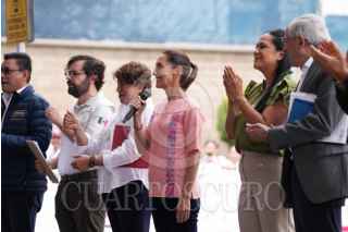 IXTAPALUCA, ESTADO DE MÉXICO, 06JUNIO2025.- Alejandro Svarch, director General del IMSS-Bienestar, Delfina Gómez, gobernadora del Estado de México, Claudia Sheinbaum Pardo, presidenta de México, Ariadna Montiel Reyes, secretaria de Bienestar, y David Kershenobich, secretario de Salud, durante el arranque del programa Salud Casa por Casa en la entidad mexiquense para garantizar el acceso de atención médica a personas en situaciones prioritarias. FOTO: PRESIDENCIA/CUARTOSCURO.COM
