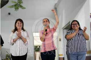 TEMIXCO, MORELOS, 06JUNIO2025.- Margarita González Saravia, gobernadora de Morelos, Claudia Sheinbaum, presidenta de México, y Citlalli Hernández, secretaria de las Mujeres, durante la inauguración del Centro Libre para las Mujeres en Temixco. Estrategia que cuenta con 678 espacios creados para brindar atención integral a nivel nacional para fortalecer la autonomía de las mujeres y prevenir y atender las violencias de género. FOTO: PRESIDENCIA/CUARTOSCURO.COM