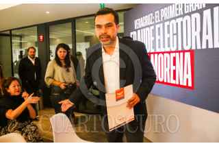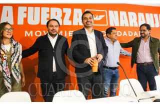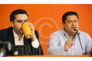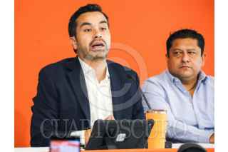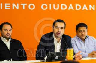 CIUDAD DE MÉXICO. 10JUNIO2025.- Sofía Castro, Luis Carbonell, Jorge Alvarez Maynez, Mariano Romero, candidato a alcalde en Papantla y Agustín Torres en la conferencia de prensa de Movimiento Ciudadano. FOTO: VICTORIA VALTIERRA/CUARTOSCURO.COM