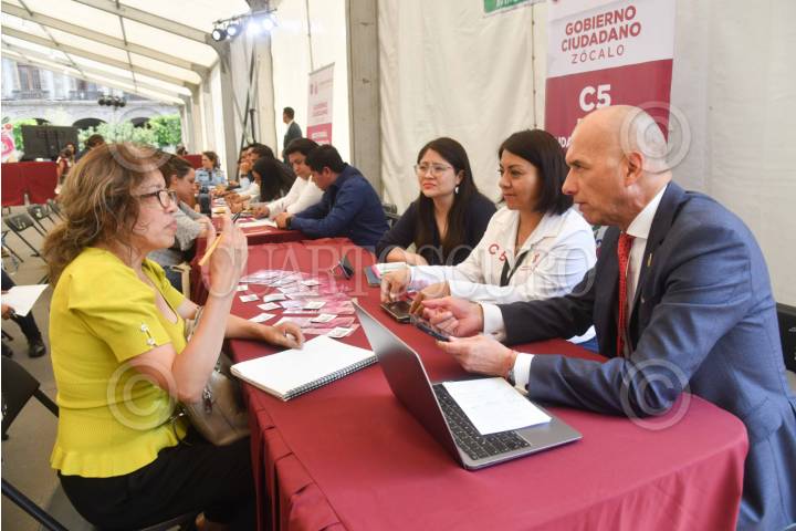 CIUDAD DE MÉXICO, 10JUNIO2025.- Salvador Guerrero Chiprés, titular del C5, durante la reunión "Zócalo de Gobierno Ciudadano" en la que escuchó las demandas sociales de algunos capitalinos. FOTO: MARIO JASSO/CUARTOSCURO.COM