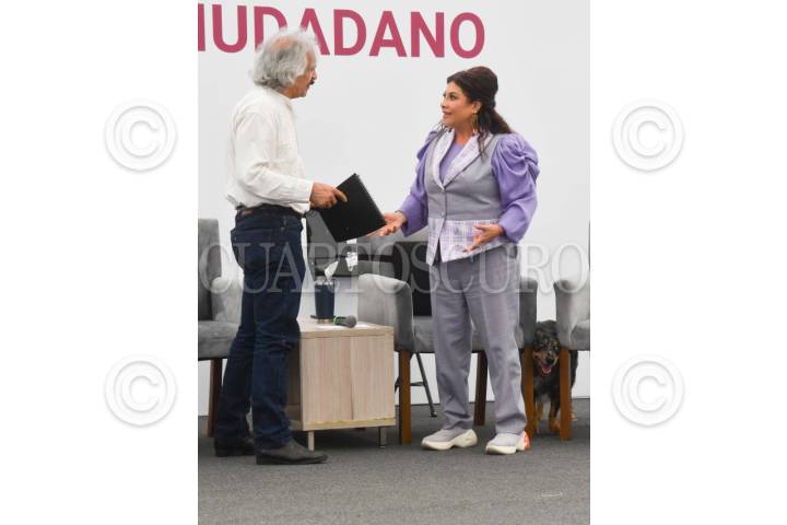 CIUDAD DE MÉXICO, 10JUNIO2025.- Clara Brugada, jefa de Gobierno, acompañada de su mascota encabezó la reunión "Zócalo de Gobierno Ciudadano" en la que escuchó las demandas sociales de algunos capitalinos. FOTO: MARIO JASSO/CUARTOSCURO.COM