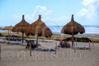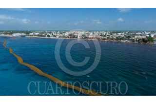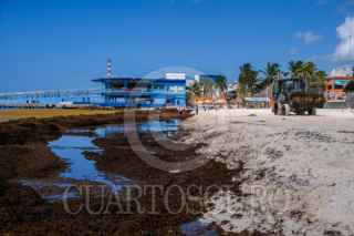 PLAYA DEL CARMEN, QUINTANA ROO, 10JUNIO2025.- Continúan las labores de limpieza en Playa del Carmen para retirar toneladas de sargazo. La gobernadora Mara Lezama ha hecho un llamado a la población a no difundir imágenes de esta situación, argumentando que afecta la imagen del destino turístico. FOTO: ELIZABETH RUIZ/CUARTOSCURO.COM