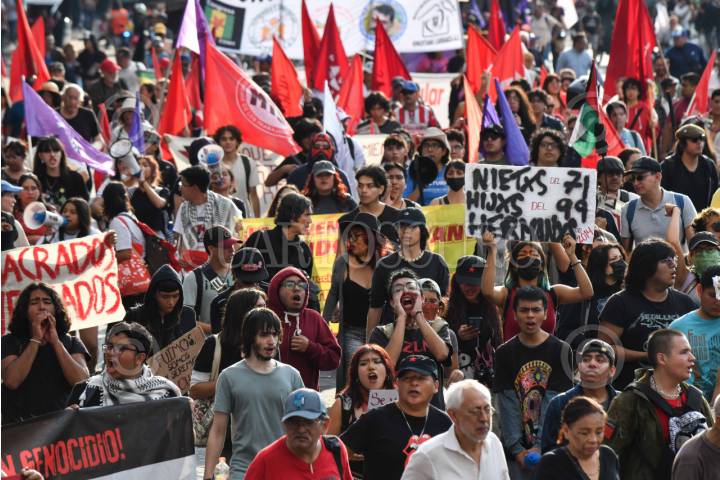 CIUDAD DE MÉXICO, 10JUNIO2025.- Estudiantes de diversas universidades participaron en la marcha por el 54 aniversario de la "Matanza de Corpus Christi" conocida como "El Halconazo". La movilización partió de la Benemérita Escuela Nacional de Maestros (BENM) rumbo al zócalo capitalino. FOTO: MARIO JASSO/CUARTOSCURO.COM