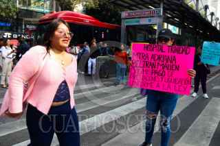 CIUDAD DE MÉXICO. 11JUNIO2025.- Trabajadores del hospital privado Trinidad, realizaron una protesta en las oficinas del nosocomio y posteriormente cerraron por algunos minutos la avenida Insurgentes Norte y Baja California; ocasionando un caos vial y la molestia de la gente que tuvo que bajar del metrobus. FOTO: VICTORIA VALTIERRA/CUARTOSCURO.COM