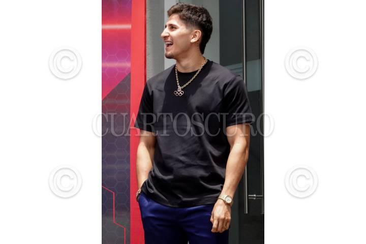 CIUDAD DE MÉXICO, 11JUNIO2025.- El boxeador sinaloense Marco Verde durante el anuncio en las instalaciones de Tv Azteca de su debut oficial en suelo mexicano el próximo 12 de julio en Sinaloa. FOTO: GALO CAÑAS/CUARTOSCURO.COM