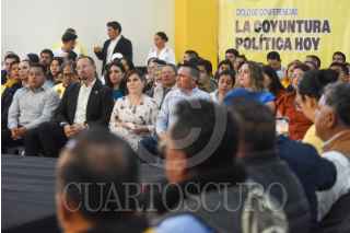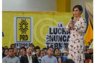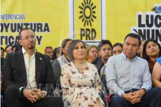 TOLUCA, ESTADO DE MÉXICO, 11JUNIO2025.- Rosario Robles Berlanga, ex jefa de Gobierno de la Ciudad de México y fundadora del PRD, acompañada por Omar Ortega, diputado local y Arturo Piña, Presidente Estatal del PRD, ofreció la conferencia magistral “La Transición traicionada” en el auditorio del Comité Directivo Estatal del Partido de la Revolución Democrática, acompañada por militantes del Sol Azteca, realizó una crítica abierta al gobierno de la Cuarta Transformación y compartió su experiencia de estar tres años en prisión. FOTO: CRISANTA ESPINOSA AGUILAR /CUARTOSCURO.COM