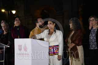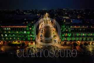 CIUDAD DE MÉXICO, 11JUNIO2025.- Clara Burgada, Jefa de Gobierno, encabezó el encendido de edificios de color verde este como cuenta regresiva a un año del inicio de la Copa del Mundo 2026, en donde nuestro país será sede de algunos partidos, como el juego inaugural. FOTO: GOBIERNO DE LA CIUDAD DE MÉXICO/CUARTOSCURO.COM
