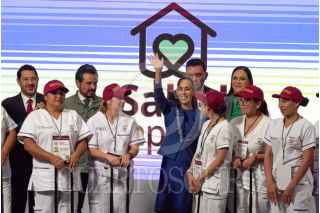 CIUDAD DE MÉXICO 12JUNIO2025.- Claudia Sheinbaum, presidenta de México, encabezó la Conferencia del Pueblo, en donde se presentó el programa "Salud Casa por casa". Le acompañan Martí Batres, director del ISSSTE, Zoé Robledo, director del IMSS, y la secretaria del Bienestar, Ariadna Montiel y subsecretario del Bienestar, Jesús Valencia Guzmán. FOTO: ROGELIO MORALES /CUARTOSCURO.COM