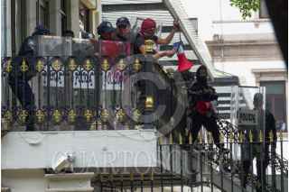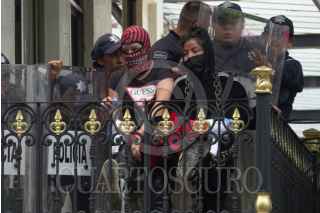 CIUDAD DE MÉXICO 12JUNIO2025.- Un grupo de mujeres realizaron una manifestación y un par de ellas irrumpieron en la Secretaria de Gobernación, esto para exigir a las autoridades se les regresara a un menor que supuestamente tenían retenido en las inmediaciones. FOTO:ROGELIO MORALES /CUARTOSCURO.COM
