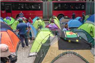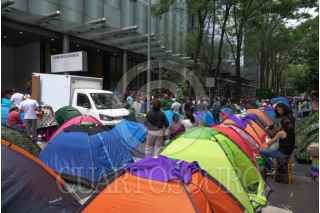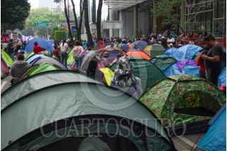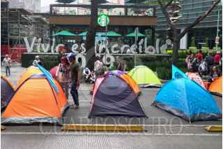 CIUDAD DE MÉXICO 12JUNIO2025.- Vecinos de San Andrés Totoltepec realizaron un bloqueo en donde colocaron casas de campaña frente a la Secretaria de Comunicaciones y Transportes ubicada en Avenida Insurgentes, los inconformes solicitaban la apertura de un pozo de agua para el suministro del vital líquido. FOTO:ROGELIO MORALES /CUARTOSCURO.COM