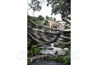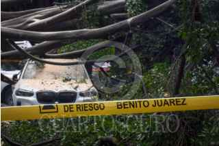 CIUDAD DE MÉXICO, 12JUNIO2025.- Derivado de las fuertes lluvias registradas esta tarde un árbol cayó sobre un vehículo que se encontraba estacionado sobre la calle Xochicalco a la altura de Luz Saviñón en la colonia Narvarte. Autoridades de protección civil de la alcaldía no reportaron personas lesionadas. Al lugar acudió personal del Plan DN-III-E de la Secretaría de la Defensa Nacional para realizar la remoción de escombros. FOTO: MARIO JASSO/CUARTOSCURO.COM