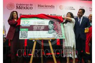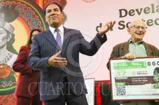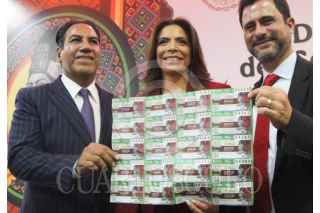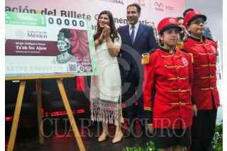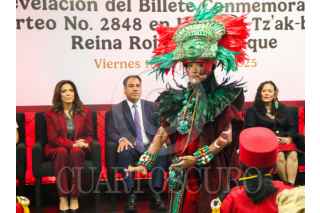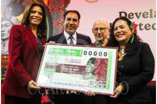 CIUDAD DE MÉXICO. 13JUNIO2025.- Develación del billete conmemorativo a la Reina Roja, Tz'ak-bu mujer indígena Maya, en el Lobby de la Lotería Nacional, que se ubican en la colonia insurgentes Mixcoac. participaron. la directora de la Lotería Nacional, Olivia Salomón, el gobernador de Chiapas, Eduardo Ramírez y Diego Prieto del INAH. FOTO: VICTORIA VALTIERRA/CUARTOSCURO COM