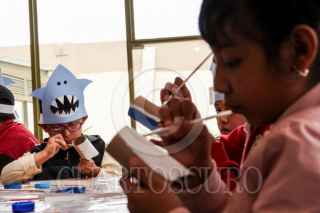 CIUDAD DE MÉXICO, 13JUNIO2025.- Un niño realiza su propio tiburón durante la inauguración de la exposición Tiburones (muestra en colaboración del Museo de Historia Natural de Nueva York y la Fundación Coppel, así como el museo Yancuic) en las inmediaciones de dicho recinto en la alcaldía Iztapalapa, que podrá ser visitado hasta octubre del presente año. FOTO: GALO CAÑAS/CUARTOSCURO.COM