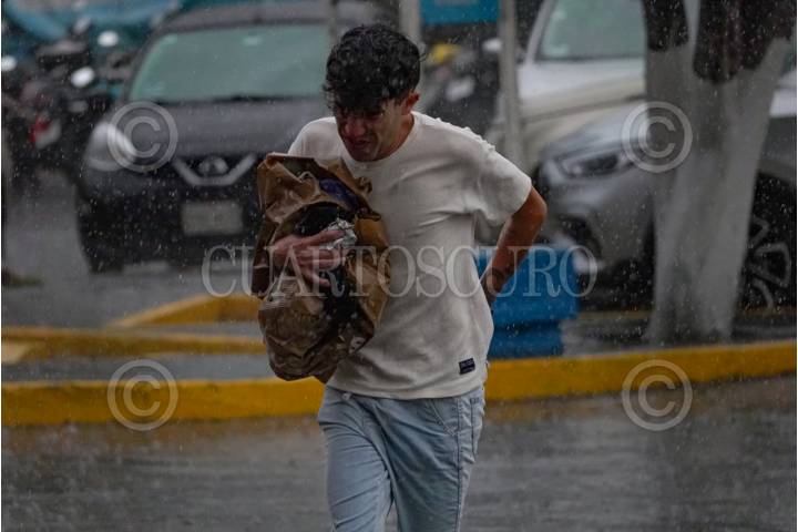 CIUDAD DE MÉXICO 13JUNIO2025.- Debido a la intensa lluvia una bolsa de cartón que carga un hombre comienza a deshacerse. FOTO:ROGELIO MORALES /CUARTOSCURO.COM