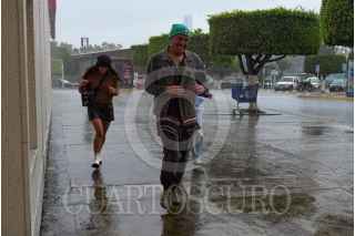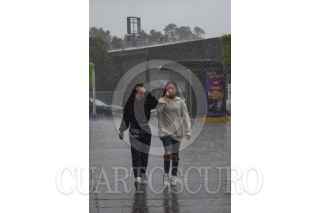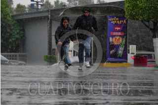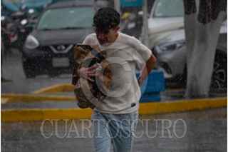 CIUDAD DE MÉXICO 13JUNIO2025.- Una pareja corre tomada de la mano, bajo la intensa lluvia que cayó en la ciudad. FOTO:ROGELIO MORALES /CUARTOSCURO.COM