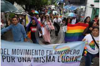 CHILPANCINGO, GUERRERO, 13JUNIO2025.- A pesar de la intensa lluvia registrada en la capital guerrerense, cientos de personas participaron en la 24ª Marcha Estatal de la Diversidad Sexual. La movilización, partió desde las inmediaciones del Congreso del Estado, donde previamente se realizó una mitin en el que se coronó a la reyna de esta edición ante activistas, representante de la comunidad y la presidenta de la Comisión de Derechos Humanos del Estado de Guerrero (CDHEG), Cecilia Narciso Gaytán. Bajo el lema "No hay orgullo sin las personas trans" y "Las vidas de las personas trans importan", los participantes exigieron el cese de los crímenes de odio y los asesinatos en contra de personas de la población LGBT. La jornada concluyó con un espectáculo cultural en la explanada del zócalo. FOTO: DASSAEV TÉLLEZ ADAME/CUARTOSCURO.COM