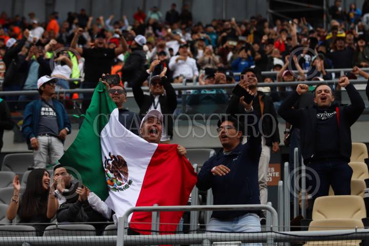 CIUDAD DE MÉXICO, 14JUNIO2025.- Los aficionados mexicanos celebran el triunfo del piloto mexicano, Daniel Suárez, durante la carrera Nascar Xfinity. FOTO: DANIEL AUGUSTO/ CUARTOSCURO.COM