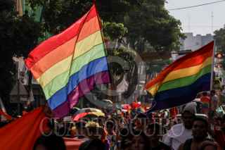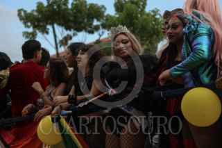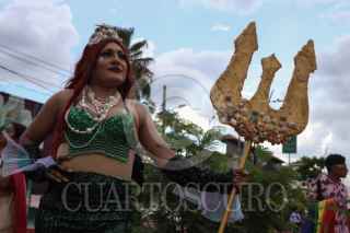 TUXTLA GUTIERREZ, CHIAPAS, 14JUNIO2025.- Una mujer transgénero con un atuendo de sirena y un tridente en la mano participa en la marcha del orgullo LGBTTIQ+ en la capital chiapaneca. FOTO: ISABEL MATEOS /CUARTOSCURO.COM