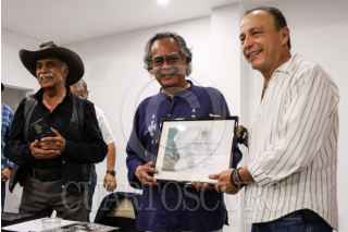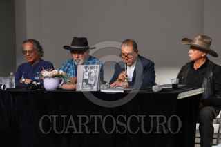 FRESNILLO, ZACATECAS, 15JUNIO2025.- Para festejar medio siglo de capturar imágenes periodísticas, el fotógrafo fresnillense Pedro Valtierra presentó la tarde de ayer en el Centro Cultural “El Tunal” el libro “Sin miedo a la luz”. En el cual estan impresas 163 fotografías icónicas con las que el fotoperiodista a registrado los momentos históricos, nacionales e internacionales en 50 años de vida fotográfica. Comentaron la publicación Alfredo Castellanos, Juan Manuel Bonilla, Roberto Cabral, Guadalupe Dávalos y el propio autor. También recibió un reconocimiento por su labor fotográfica en manos del director del espacio Rubén Rivera. FOTO: ADOLFO VLADIMIR /CUARTOSCURO.COM